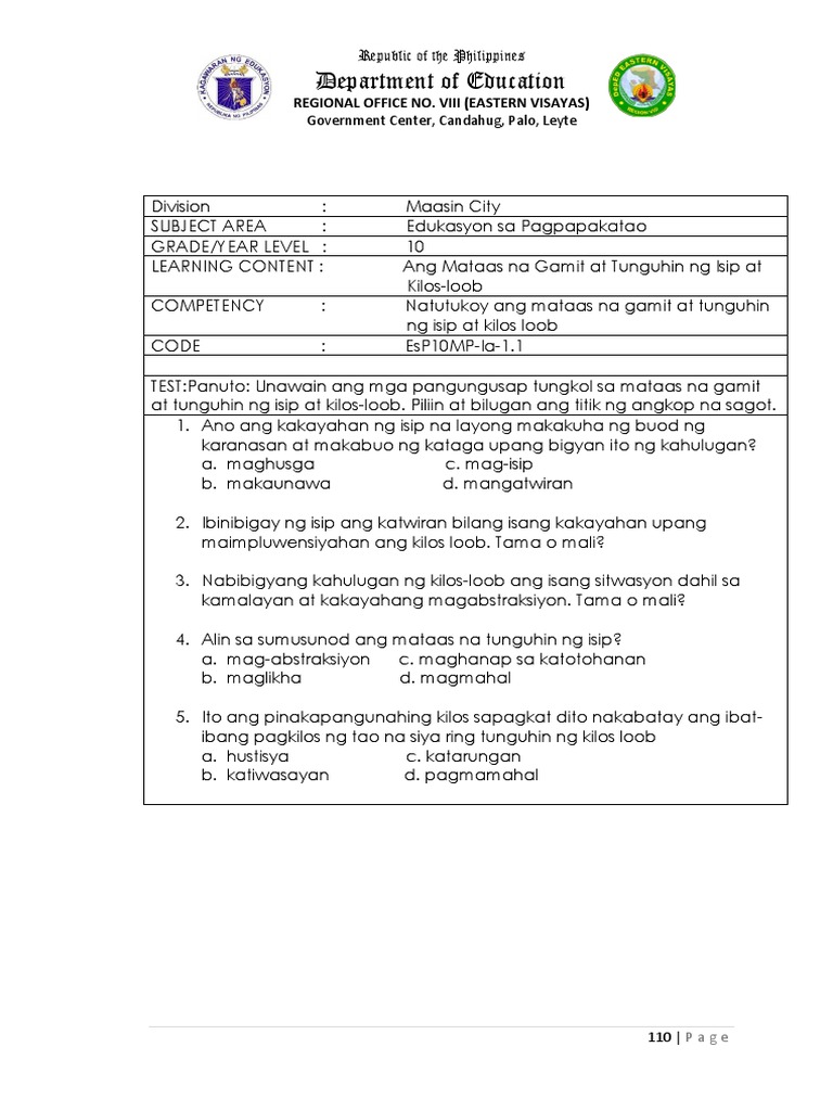 Isip At Kilos-loob G10ok 1 ang titik ng tamang sagot. Pangkatin ang mg a mag-aaral sa nang may 10-1 1. 1ubod ng tapang 2kabi-kabighani 3magkasintamis 4di gaano.