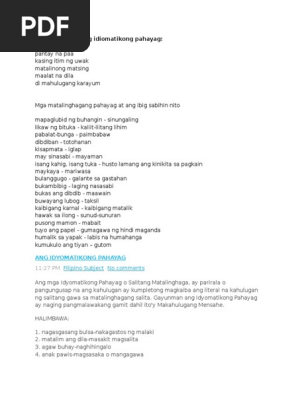 Mga Halimbawa Ng Idiomatikong Pahayag