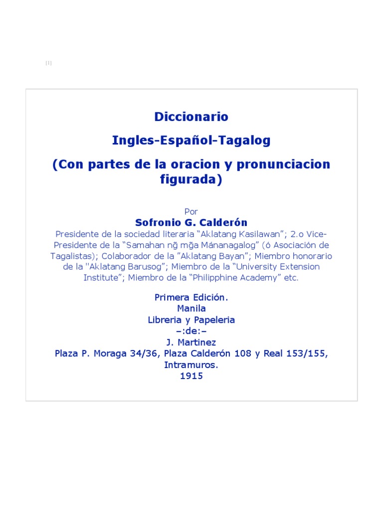 Diccionario Ingles Espa Ol Tagalog Con Partes De La Oraci N Y Pronunciaci N Figurada